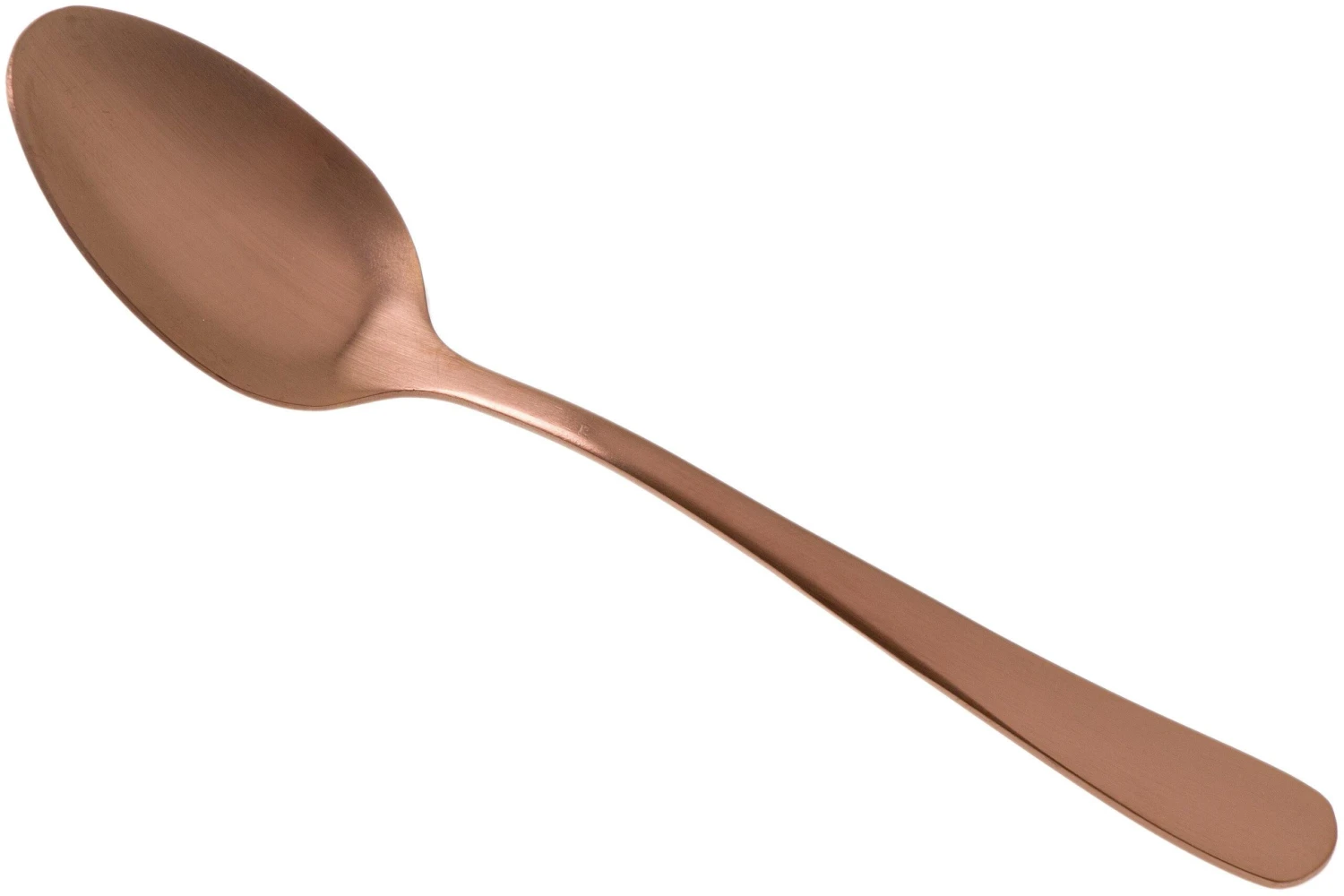 Estas impresionantes cucharas Austin 1410 tienen un aspecto lujoso gracias al color cobre. Están fabricadas en acero inoxidable 18/0 y mejoradas con un fino revestimiento de PVD de titanio. La longitud de las cucharitas es de 12 cm.