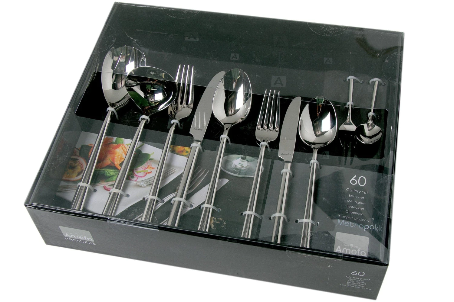 El Amefa Metropole es un modelo de la gama Premiere. Esta gama combina calidad con diseños exclusivos y funcionalidad. El modelo Metropole es un modelo de líneas largas y delgadas con un mango inclinado. El diseño se basa en la arquitectura urbana contemporánea y tiene un aspecto lujoso y moderno. Los cubiertos de esta colección están fabricados en acero al cromo-níquel 18/10, tienen un acabado muy brillante y son aptos para el lavavajillas.