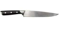 El cuchillo para trinchar de 11 cm Böker Forge BO03BO506 combina un diseño innovador con materiales de primera calidad. Está perfectamente equilibrado gracias al mango full-tang. Sobre todo teniendo en cuenta la longitud de la hoja. Por lo tanto, el cuchillo se siente muy bien en la mano. Corta sin esfuerzo las más bellas rebanadas de pollo, carne enrollada u otra carne preparada. La hoja está hecha de acero inoxidable alemán X50CrMoV15 muy afilado. La hoja no contiene una virola: esto significa que tienes más hoja que puedes usar y también es más fácil de afilar. El gran mango de ABS se funde a la perfección con el acero de la hoja. Así, la suciedad no podrá acumularse. Introduce en tu casa la calidad alemana con este cuchillo para trinchar de Böker Forge.