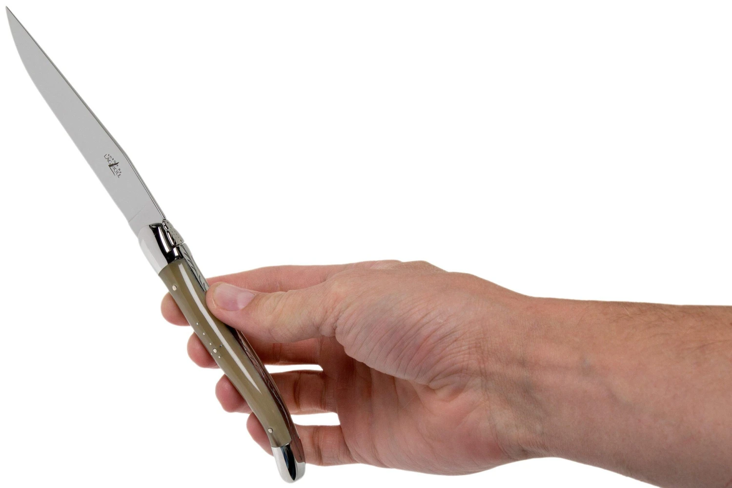 Con este juego de cuchillos de mesa de seis piezas Forge de Laguiole sorprenderás a todos tus invitados durante la cena. De fabricación tradicional y súper elegantes: estos cuchillos de mesa transmiten estilo y delicadeza. Todos los cuchillos se fabrican a mano en el taller Forge de Laguiole, en la localidad francesa de Laguiole. La firma del diseñador aparece en cada cuchillo. Pura artesanía que raramente se ve hoy en día.