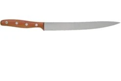 Este cuchillo para trinchar Robert Herder K6M con espiga continua es un cuchillo para trinchar clásico de la colección K de Robert Herder. El filo de la hoja está totalmente afilado y puede utilizarse de punta a punta. Un cuchillo para trinchar afilado que pueda utilizarse para cortar la carne. Sin embargo, también se puede utilizar para cortar el pescado. Debido a la longitud de la hoja, es perfecta para cortar jamón o salmón.